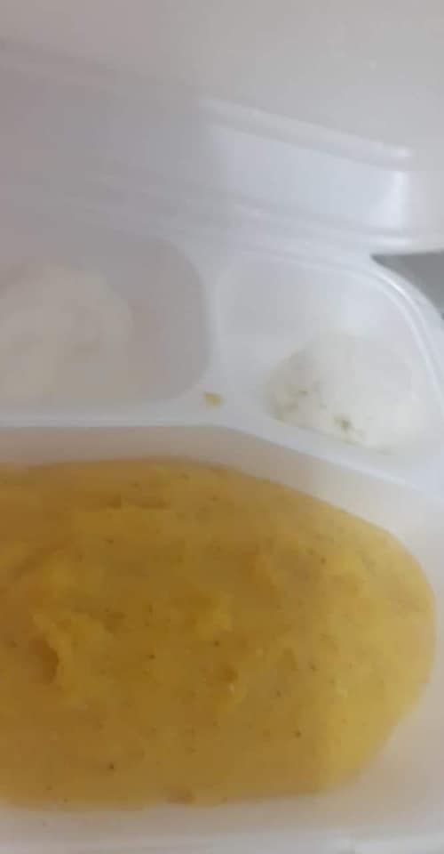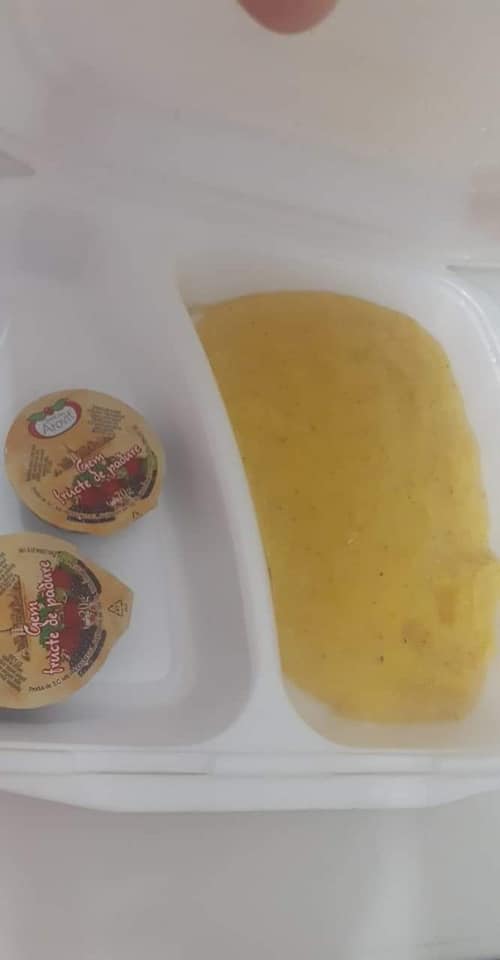 „Ce să vă spun mi-e silă de ceea ce o să vă zic. Ce vedeți în poze este cina pentru o mămică și fiul. Asta este mâncarea de la chirurgie pediatrică din Cluj Napoca. Nu credeam că la Cluj se dă asemenea mâncare . Trebuie făcut ceva să se ia măsuri în privința asta. Pentru ce plătim atâția bani la țara asta de rahat? Ca să primim mămăligă cu gem? Întreb și eu așa din curiozitate oare DOCTORI, ASISTENTELE ȘI RESTUL CADRELOR MEDICALE MĂNÂNCĂ AȘA CEVA? ÎN CE ȚARĂ TRĂIM OAMENI BUNI? Dacă ei ar fi internați cu copilași lor le-ar da așa ceva să mănânce? Cum poți da două cuburi de gem și mămăligă la două persoane. Aș vrea să vadă acest mesaj și Ministrul Sănătății și toți din Guvern”, a spus o mămică nemulțumită.
